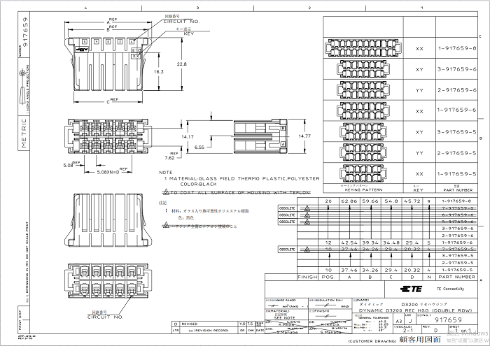 2. Tương thích/thay thế đầu nối Tyco | TE | Tyco | 1-917659-8 đầu nối hình chữ nhật Thông số kỹ thuật sản phẩm: