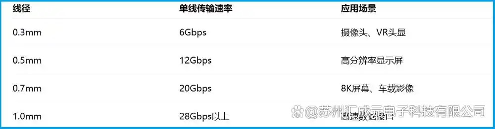 Dựa trên ví dụ của camera an ninh, Micro Coax AWG36 kết nối với bo mạch và mô-đun camera, một sợi dây có thể thực hiện tốc độ truyền tải 6Gbps. Nếu sử dụng song song nhiều dây, băng thông tổng có thể dễ dàng đạt đến 48Gbps thậm chí cao hơn.
