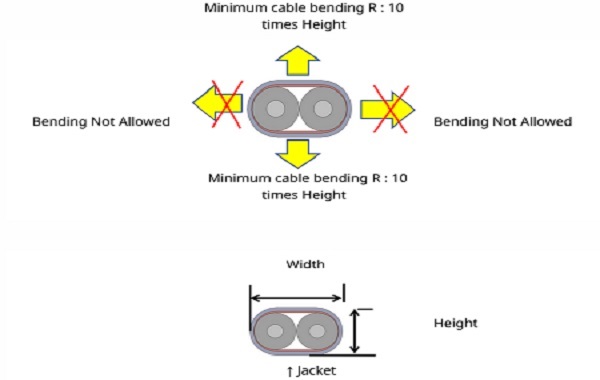 • Khoảng bán kính gập nhỏ nhất:电缆 kép cho phép gập theo hướng dày của电缆, giá trị khuyến nghị thường là 10 lần chiều cao của电缆, để đảm bảo khoảng cách giữa các导体 và cấu trúc điện trở không bị phá hủy, từ đó đảm bảo tính toàn vẹn của信号.