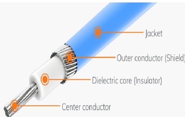 Cáp đồng trục mỏng延续傳統同軸 cáp cấu trúc lớp, bao gồm导体 trung tâm, lớp dielektrik, lớp bọc kim loại và lớp vỏ ngoài.